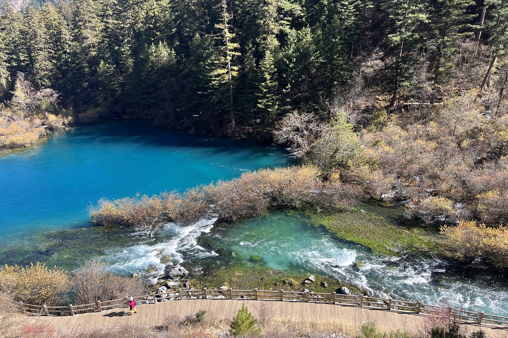 “人間仙境”九寨溝同樣美得不可方物,斑斕的樹葉、清澈的流水、慵懶的暖陽……在這寂靜的景色中,人也不知不覺沉醉其中。他們或欣賞美麗的風(fēng)景,或擺著各種pose,一起拍照合影留念,或倚靠在家人身旁談笑聊天,享受團聚的美好時光。