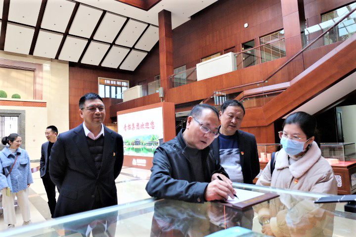 在企業(yè)黨群展廳,鐘盛江匯報了青拓集團黨委在黨建工作以及黨史學習教育方面的工作開展情況。一行人員對青拓集團深入學習貫徹習近平總書記關(guān)于發(fā)展非公有制經(jīng)濟和加強非公企業(yè)黨建工作的重要論述,緊跟黨組織步伐,堅持黨建引領(lǐng)發(fā)展給予高度肯定,對“黨建聯(lián)盟”和“五融五促”創(chuàng)新工作模式給予高度評價。