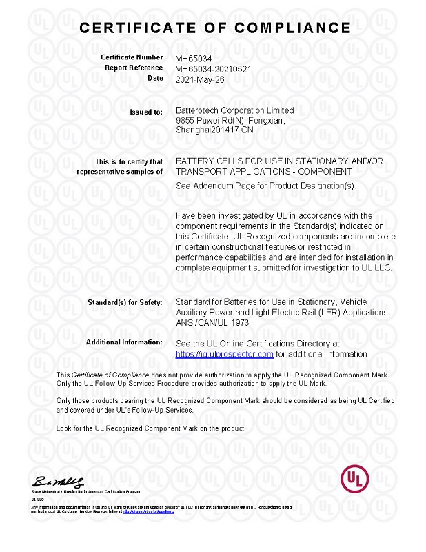國慶將至,上海蘭鈞新能源科技有限公司又傳來好消息,其LFP-50Ah、LFP-70Ah及LFP-280Ah電芯在通過UL1973電池安全測試并取得UL頒發(fā)的證書后,又順利通過了IEC62619電池安全測試,滿足了美國(UL)及歐洲國際電工委員會(IEC)所制定的相應(yīng)標(biāo)準(zhǔn)以及技術(shù)要求;與此同時,LFP-280Ah電芯也通過了UL9540A測試并取得相應(yīng)報(bào)告。加上之前通過的國家標(biāo)準(zhǔn)GB 38031,GB/T 31484和GB/T 31486的檢測,這意味著50Ah、70Ah及280Ah型號的電芯均已獲得中國、美國、歐盟等主要國際市場嚴(yán)苛標(biāo)準(zhǔn)的檢驗(yàn)認(rèn)可,也代表蘭鈞新能源已獲得供應(yīng)國內(nèi)市場的資質(zhì)及通往歐美國家的通行證。此外,LFP-50Ah和LFP-70Ah兩款電芯的UL9540A測試及280Ah GB/T 36276測試已完成送樣,目前正在測試機(jī)構(gòu)進(jìn)行認(rèn)證。