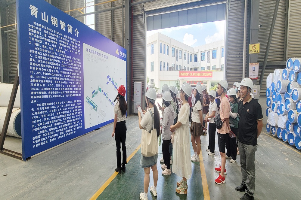 青山鋼管福建分公司的解說員帶領(lǐng)大家觀看了不銹鋼深加工產(chǎn)業(yè)園的視頻,參觀了焊管車間的生產(chǎn)線流程,介紹了公司的基本概況和發(fā)展前景。通過實(shí)地參觀,讓畢業(yè)生對企業(yè)的工作環(huán)境和企業(yè)文化有了更直觀的認(rèn)識和了解,提升了企業(yè)認(rèn)同感,吸引他們到企業(yè)就業(yè)。