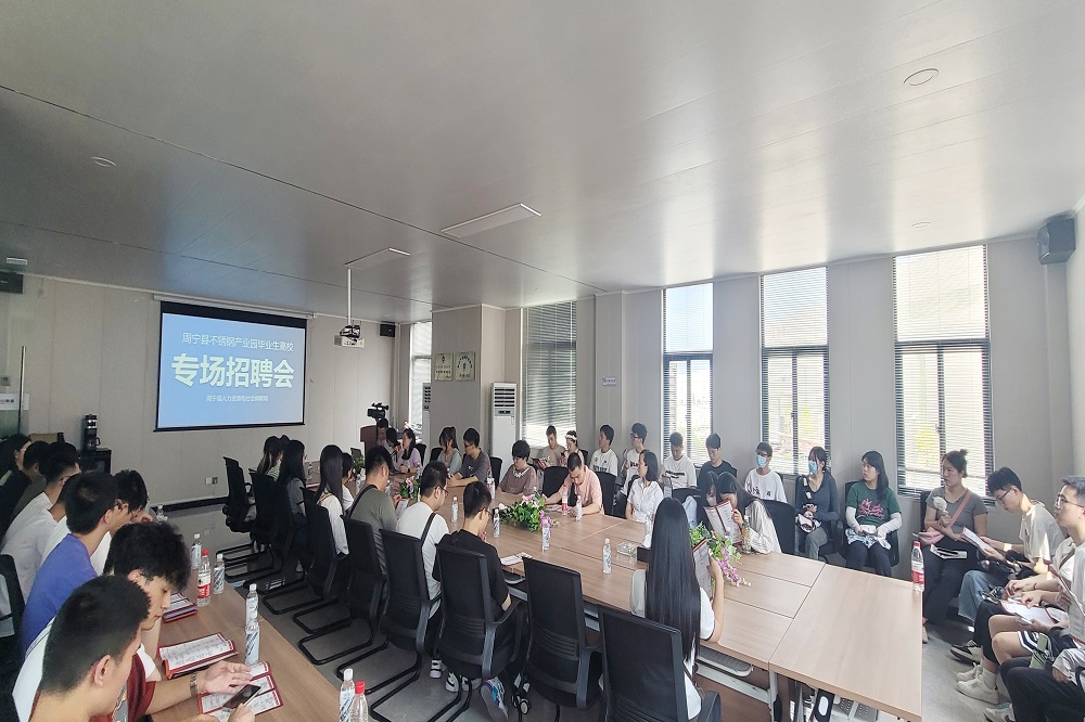 為保障園區(qū)企業(yè)引才需求,促進(jìn)高校畢業(yè)生就業(yè),7月10日,周寧縣人力資源和社會保障局在青山鋼管有限公司福建分公司舉辦了“周寧不銹鋼深加工產(chǎn)業(yè)園高校畢業(yè)生專場招聘會”,為高校畢業(yè)生與企業(yè)搭建雙向交流平臺。青山鋼管、盟信公司等多家園區(qū)企業(yè)參加招聘會,提供多個優(yōu)質(zhì)就業(yè)崗位。