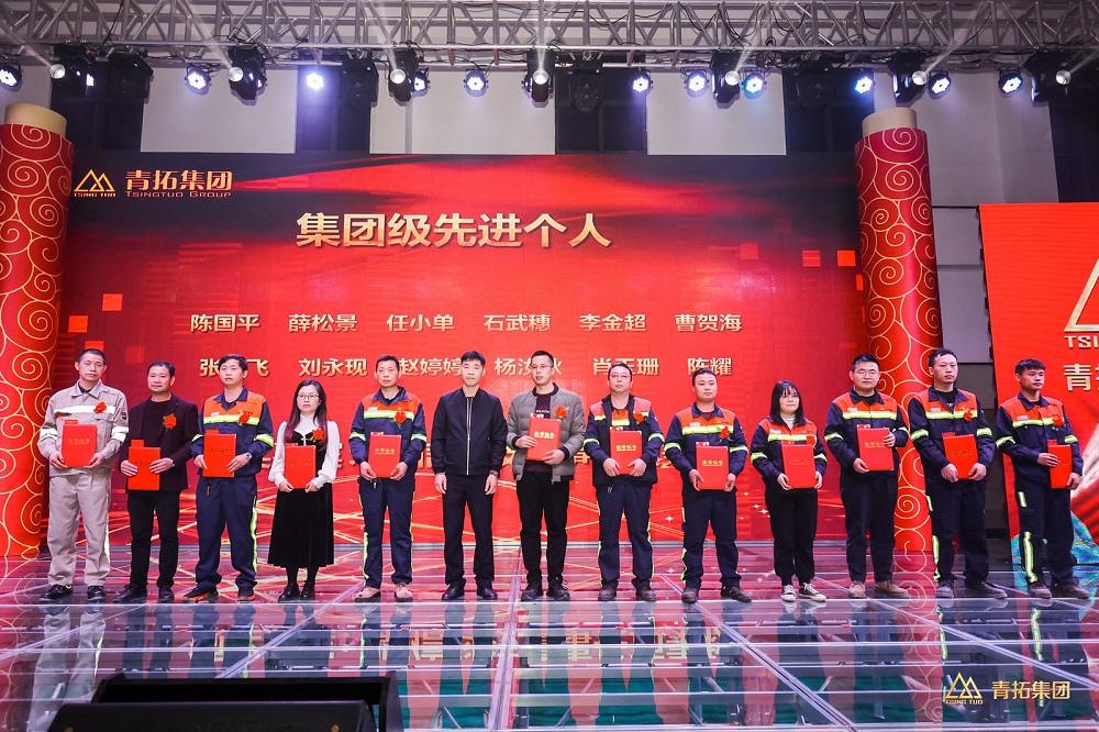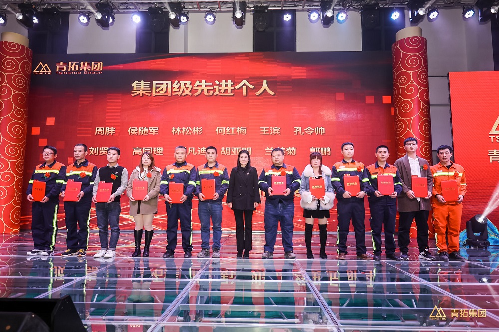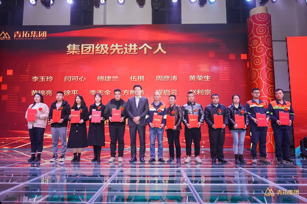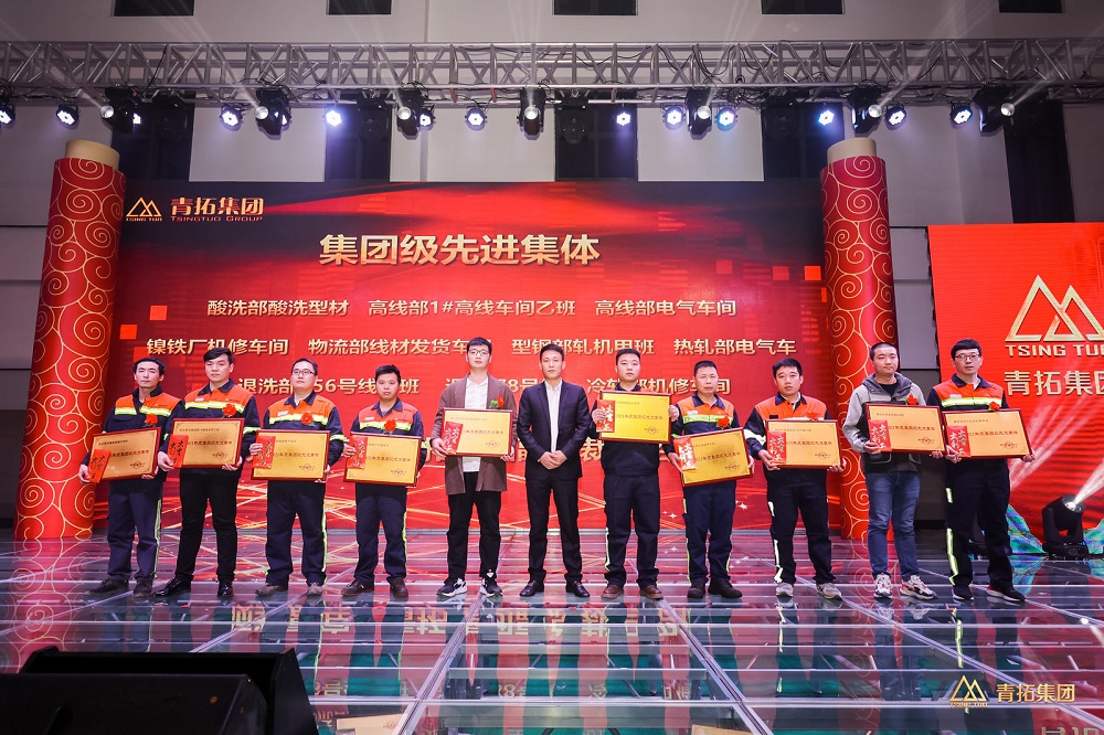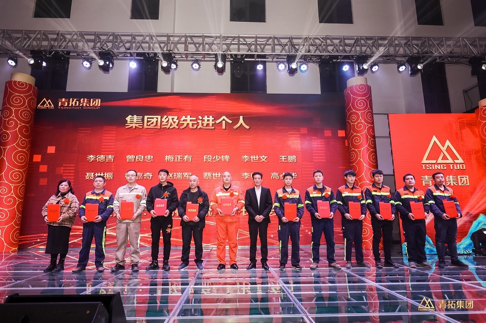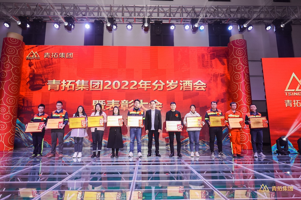 1月27日18時18分,青拓集團有限公司順利舉行了以“圓夢在青拓 一起向未來”為主題的2022年分歲酒會暨表彰大會。青拓集團董事長姜海洪、青山控股集團董事長項秉雪、青拓集團總裁陳慶科、永青集團總裁伍華弟及青拓集團和各子公司相關領導,車間主任(含工程師級別)以上管理人員,2021年度先進集體代表和先進個人,部分家屬代表等親臨活動現(xiàn)場,周邊村委領導,甬金、宏旺等公司領導,青拓綜合門診醫(yī)護人員,《連家船民的美好生活》劇組導演組和部分演員受邀參加了此次活動。