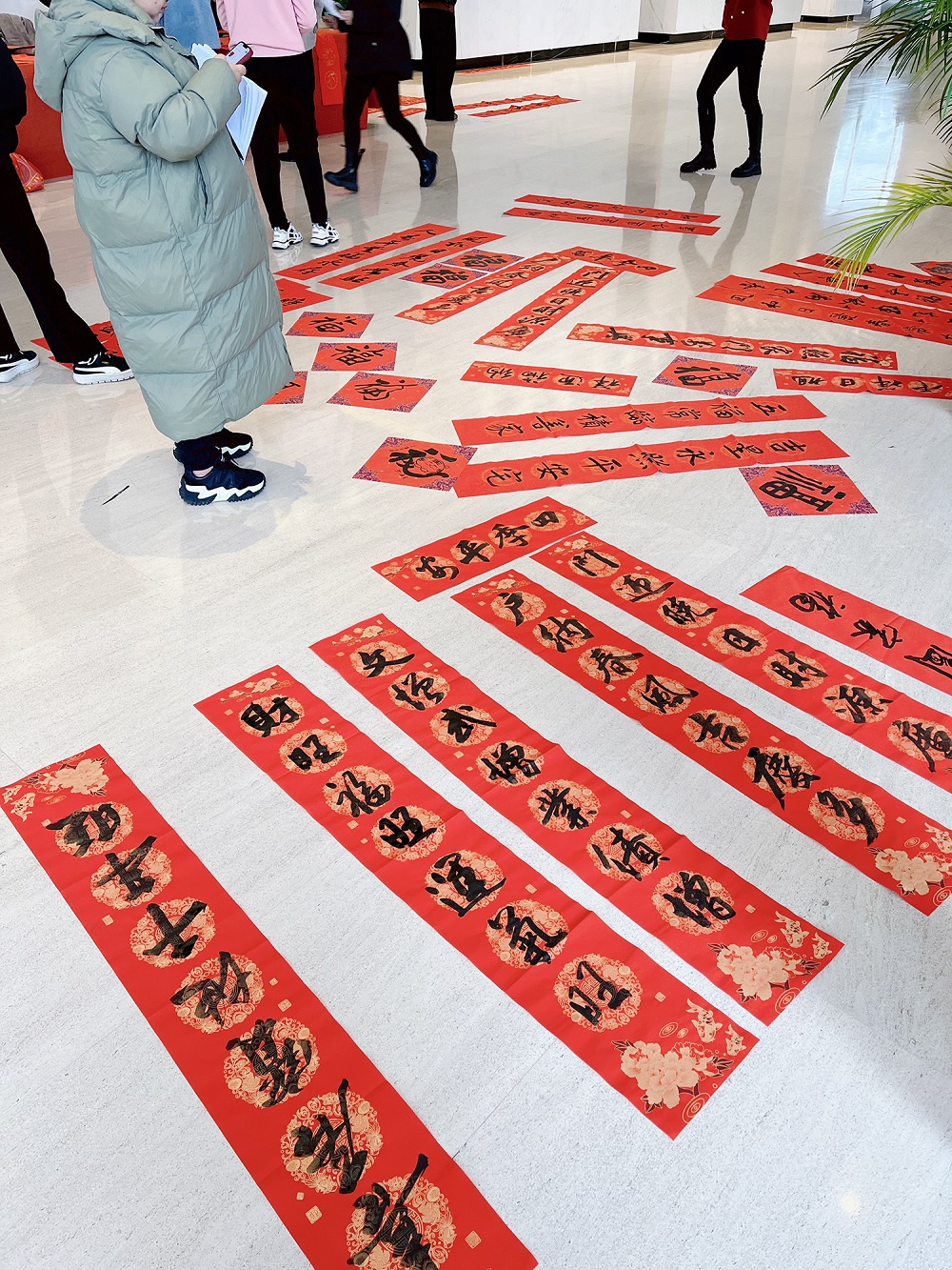 本次活動(dòng)邀請(qǐng)了8位書(shū)法家來(lái)到活動(dòng)現(xiàn)場(chǎng),他們紅幅鋪展,筆尖游走于墨色與紙張之間,多種書(shū)體各顯神韻,很快一副副妙筆成雙的春聯(lián)和喜慶的大紅“福”字就展現(xiàn)在大家眼前,一平一仄、一撇一捺間寄托著濃濃的新春祝福。員工們紛紛到現(xiàn)場(chǎng)觀摩,并爭(zhēng)相邀請(qǐng)書(shū)法家寫(xiě)上自己心儀的春聯(lián)和福字,現(xiàn)場(chǎng)洋溢著迎春接福的歡樂(lè)氣氛。