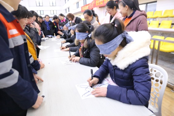 此次活動(dòng)設(shè)“乒乒球接力”、“情歌天后”“蒙眼作畫”三個(gè)游戲項(xiàng)目。乒乓球接力游戲中,每一位選手都小心翼翼,生怕球落地,賽場(chǎng)上加油吶喊聲不斷,各參賽隊(duì)員相互協(xié)作,各隊(duì)伍你追我趕,一展巾幗風(fēng)采。