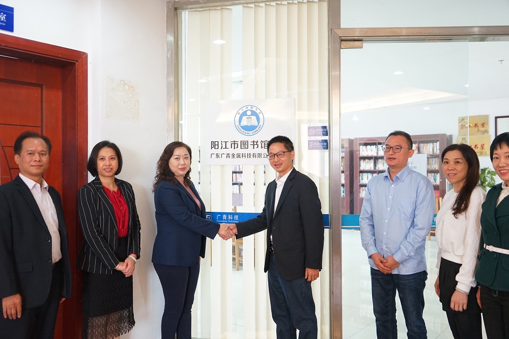 12月9日上午,“陽江市圖書館圖書流動點”揭幕簽約儀式在廣東廣青金屬科技有限公司文體中心三樓圖書閱覽室舉行。陽江市圖書館館長許世歡,廣青科技黨委副書記、工會主席王大慶,陽江日報社等相關負責人參加了活動。