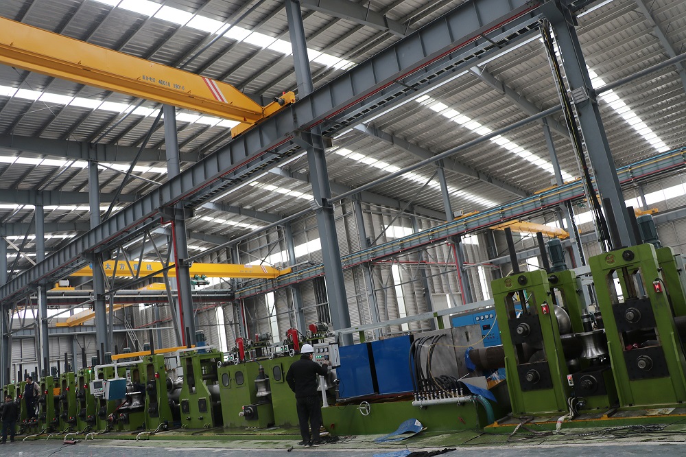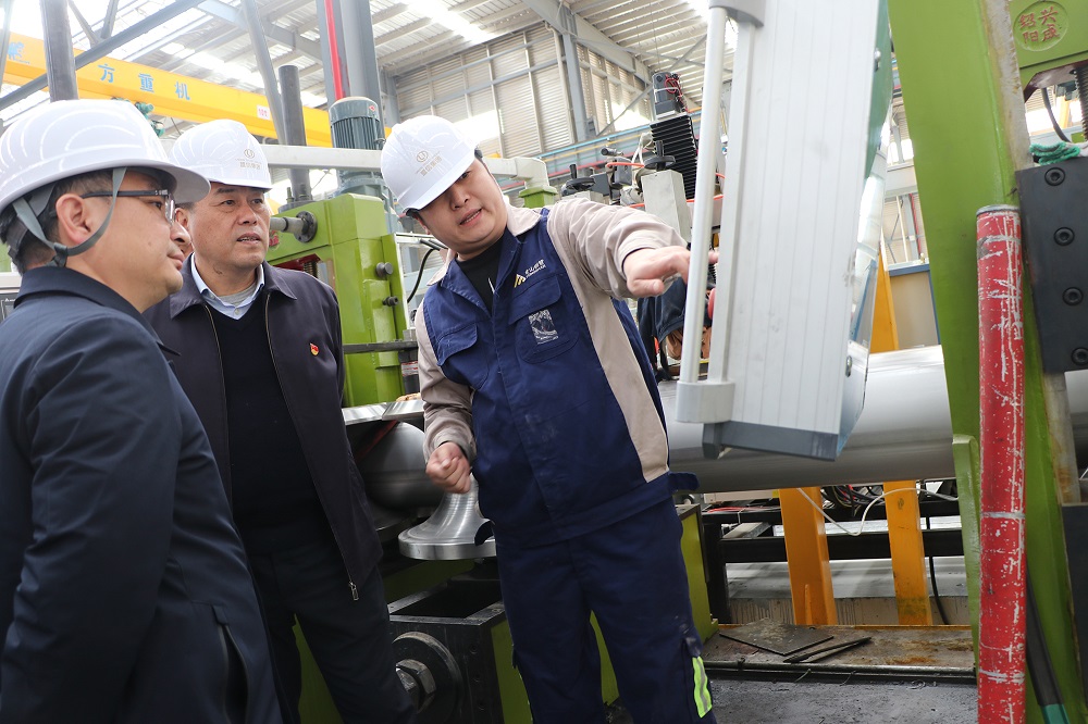 曾智勇一行還親赴園區(qū)浙江青山鋼管有限公司參觀了焊管車(chē)間,了解企業(yè)工藝和設(shè)備情況。在仔細(xì)聆聽(tīng)車(chē)間主任對(duì)生產(chǎn)工藝流程及流水線設(shè)備的介紹后,曾智勇連連點(diǎn)頭給予肯定。