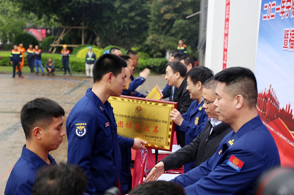 大會(huì)結(jié)束后,胡楠與各位領(lǐng)導(dǎo)為消防救援支隊(duì)各小組代表進(jìn)行頒獎(jiǎng),勉勵(lì)他們百尺竿頭,更進(jìn)一步。