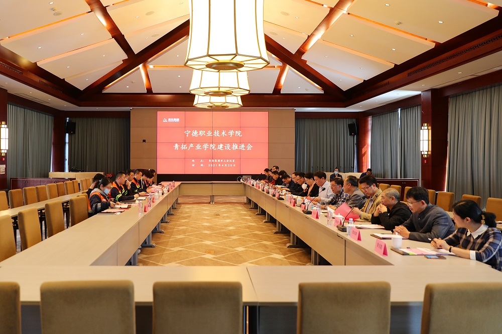 4月20日,寧德職業(yè)技術(shù)學(xué)院黨委書記林浩云、院長(zhǎng)陳群一行17人到青拓集團(tuán)有限公司召開青拓產(chǎn)業(yè)學(xué)院推進(jìn)會(huì),寧德市人社局副局長(zhǎng)謝成彬,教育局副局長(zhǎng)陳建華、主任吳燦壽受邀參會(huì),青拓集團(tuán)黨委書記、行政總經(jīng)理鐘盛江,人力資源部部長(zhǎng)劉永清、副部長(zhǎng)周其龍等進(jìn)行熱情接待。