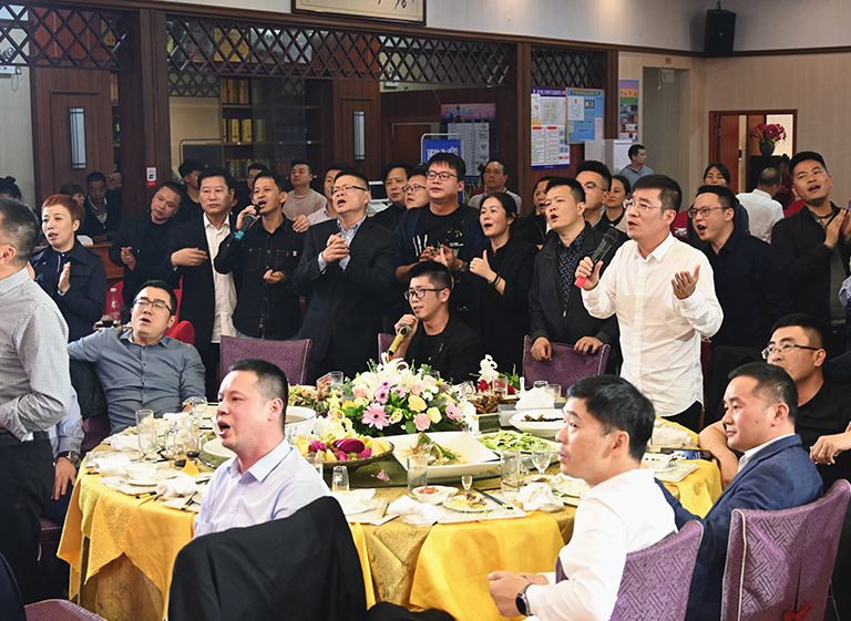 宴會之上,歡歌笑語,掌聲陣陣,青山情懷在一首首耳熟能詳?shù)臅r代歌曲中抒發(fā),大家把酒言歡,暢抒胸臆,共敘情誼,表青山初心,繪青山藍圖。酒會最后,大家齊唱《今天是你的生日》,用歌聲祝福祖國國泰民安,繁榮昌盛。