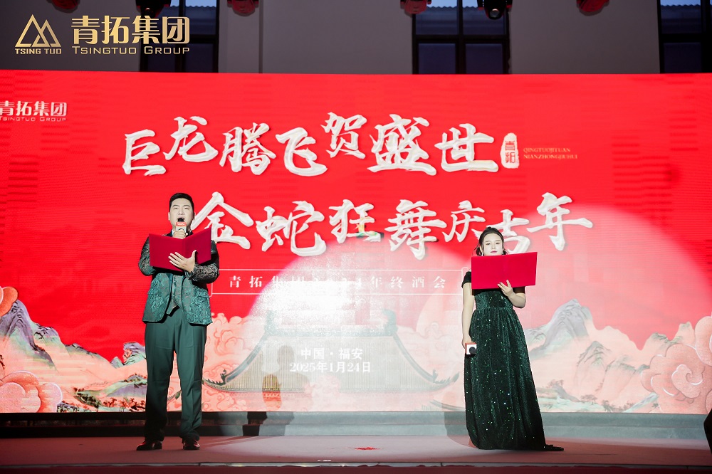 1月24日,青拓集團(tuán)有限公司舉行了“巨龍騰飛賀盛世 金蛇狂舞慶吉年”2024年終酒會(huì)。青拓集團(tuán)董事長(zhǎng)姜海洪、副董事長(zhǎng)項(xiàng)秉雪、總裁陳慶科,副總裁馮紹德、項(xiàng)炳慶、周玉泉及集團(tuán)直屬各部門、各子公司領(lǐng)導(dǎo)、管理人員等600余人出席,青拓集團(tuán)總裁助理翁輝主持活動(dòng)。