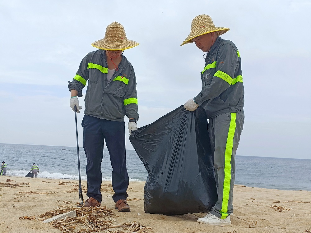 活動(dòng)當(dāng)天,黨員與團(tuán)員們身著統(tǒng)一服裝,攜帶清潔工具前往東島金沙灘。盡管酷熱難耐,但全體人員熱情高漲,大家分工明確、協(xié)作有序,配合十分默契,認(rèn)真細(xì)致地清理沙灘上的各類垃圾,以實(shí)際行動(dòng)為守護(hù)海灘貢獻(xiàn)力量。經(jīng)過(guò)共同努力,原本散落著垃圾的海灘煥然一新,重新展現(xiàn)出美麗的海濱風(fēng)光。
