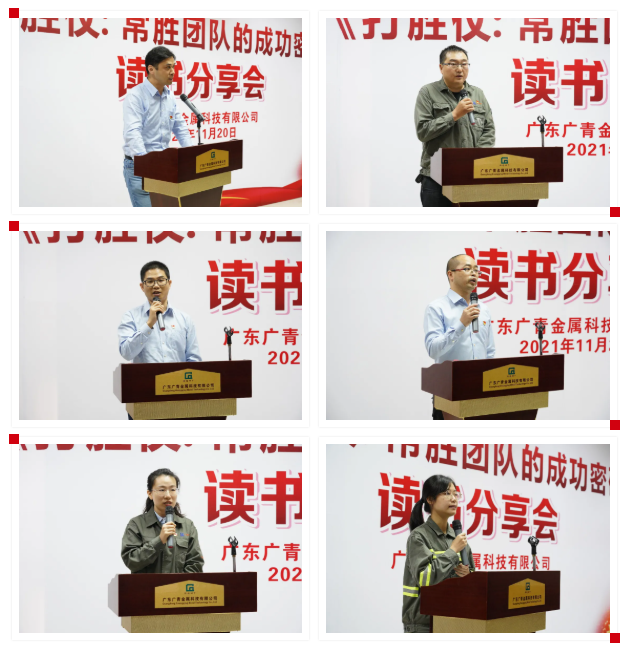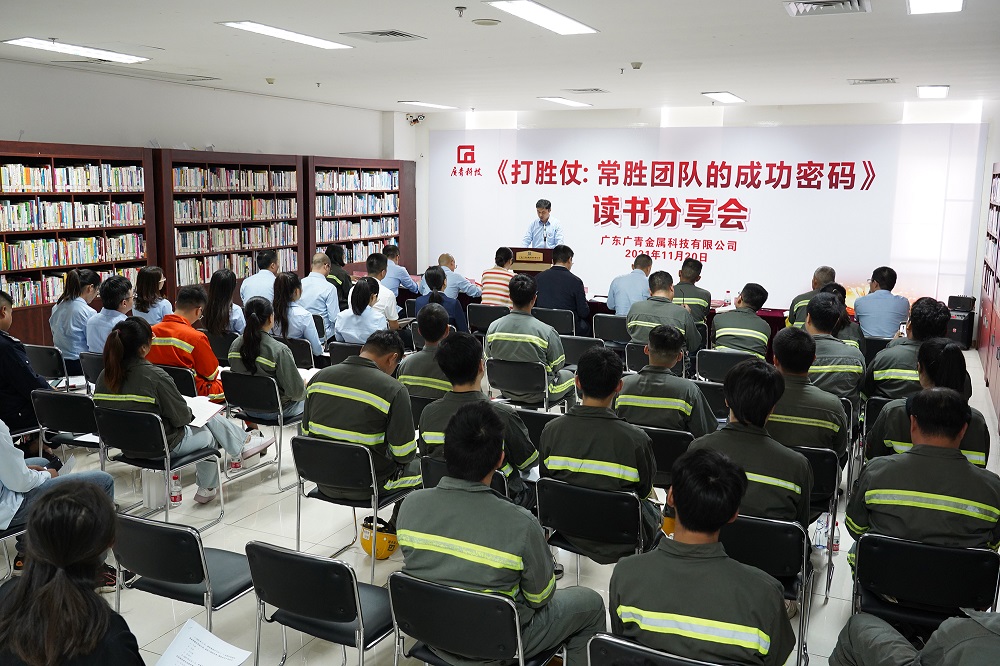 為加快打造公司特色企業(yè)文化,增強(qiáng)廣大員工的凝聚力、執(zhí)行力、創(chuàng)新力、戰(zhàn)斗力,進(jìn)一步推動(dòng)公司高質(zhì)量發(fā)展,11月20日,廣東廣青金屬科技有限公司在綜合樓圖書館舉辦了《打勝仗:常勝團(tuán)隊(duì)的成功密碼》讀書分享會(huì)活動(dòng)。公司黨委書記、董事長王駿,黨委班子成員、支部書記、黨員代表和干部職工代表共70多人參加了活動(dòng)。