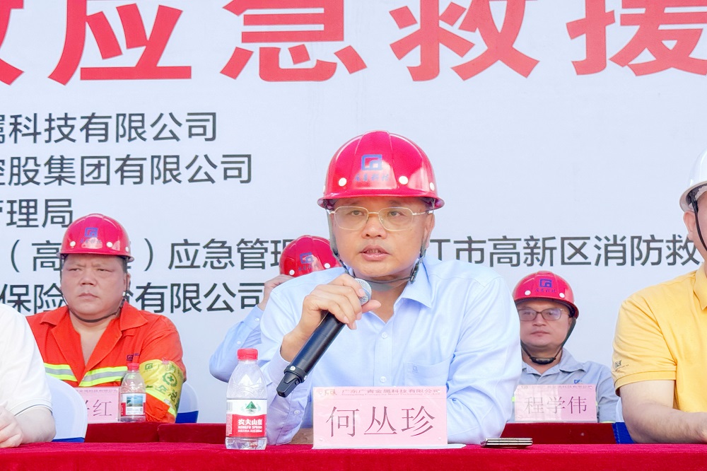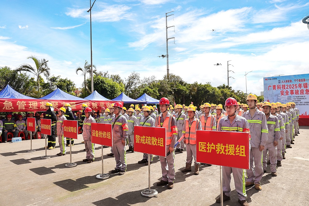 為深入學習貫徹習近平總書記關于安全生產(chǎn)重要論述,全面落實“人人講安全、個個會應急——查找身邊安全隱患”的安全生產(chǎn)月主題,6月24日,廣東廣青金屬科技有限公司在鎳鐵廠舉行2025年礦熱爐漏爐安全事故應急救援演練。公司董事、總經(jīng)理何叢珍等領導班子成員以及260多名員工代表參加演練;廣新集團安全總監(jiān)兼安環(huán)部總經(jīng)理王磊,陽江市應急管理局基礎科科長杜鋒杰,陽江濱海新區(qū)應急管理局局長梁一聰,陽江高新區(qū)消防大隊、中國人保陽江分公司等相關單位領導到場觀摩指導。