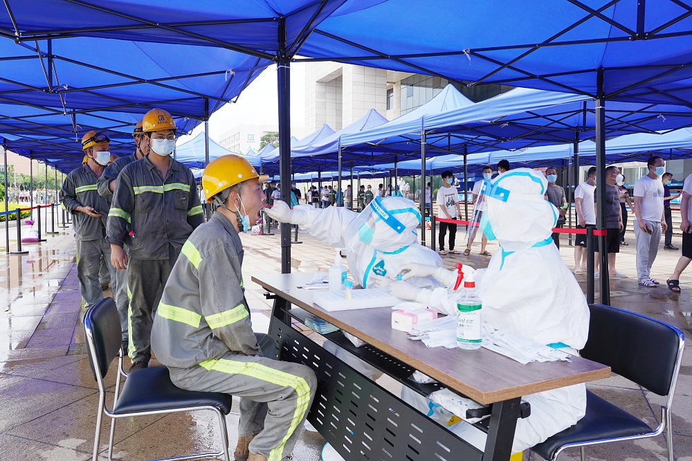為深入貫徹落實全國全省疫情防控、安全生產(chǎn)和三防工作電視電話會議精神,認(rèn)真落實廣東省國資委關(guān)于疫情防控的工作要求,按照陽江高新區(qū)新冠肺炎防控指揮辦統(tǒng)一部署,5月13日,廣東廣青金屬科技有限公司開展了全員核酸檢測,公司全體在崗人員、員工家屬及外協(xié)單位人員共4596人參加了此次檢測。