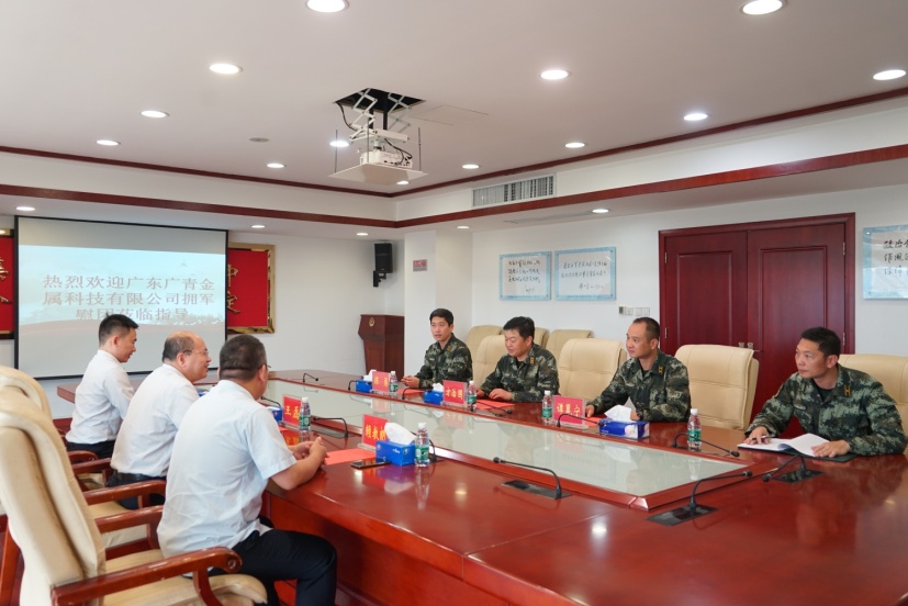 7月29日,在“八一”建軍節(jié)即將來臨之際,廣東廣青金屬科技有限公司黨委書記、董事長王磊率慰問團(tuán)開展了擁軍慰問活動,代表公司向武警陽江支隊(duì)和陽江軍分區(qū)送去米、油等慰問品,向廣大官兵們表達(dá)了節(jié)日的祝福和問候。