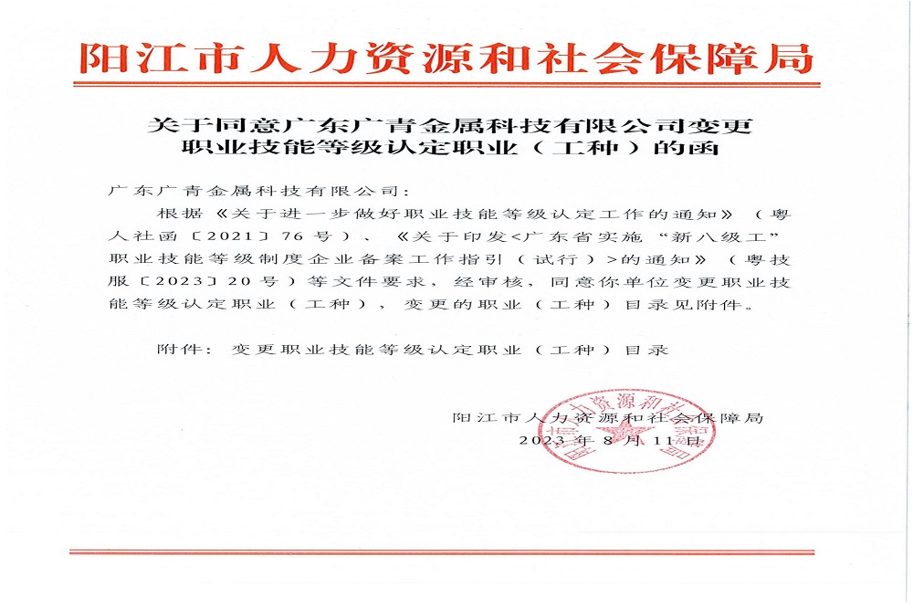 近日,廣東廣青金屬科技有限公司成功獲批電焊工、高爐爐前工、高爐煉鐵操作工、軋鋼工、連鑄工五個(gè)工種的初級(jí)工(5級(jí))、中級(jí)工(4級(jí))、高級(jí)工(3級(jí))、技師(2級(jí))、高級(jí)技師(1級(jí))、特級(jí)技師、首席技師七個(gè)等級(jí)的評(píng)價(jià)資格,以及電工、鉗工的技師(2級(jí))、高級(jí)技師(1級(jí))、特級(jí)技師、首席技師四個(gè)等級(jí)的認(rèn)定資格,新增工種覆蓋公司五大廠區(qū)以及裝備部的主要工種,標(biāo)志著公司職業(yè)技能等級(jí)評(píng)價(jià)邁入“新里程”,進(jìn)一步完善公司企業(yè)技能人才評(píng)價(jià)體系和高技能人才培育平臺(tái)。