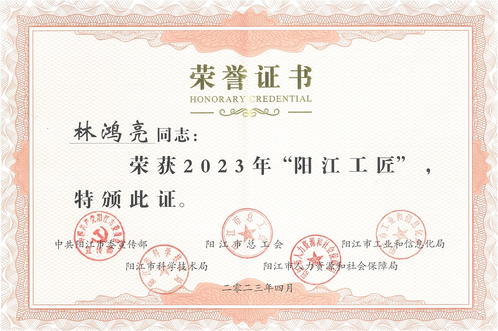 4月27日,2023年“陽江工匠”發(fā)布活動在市委會堂舉行,廣東廣青金屬科技有限公司首席工程師、技術(shù)質(zhì)量部部長兼研究院副院長林鴻亮榮獲2023年“陽江工匠”。