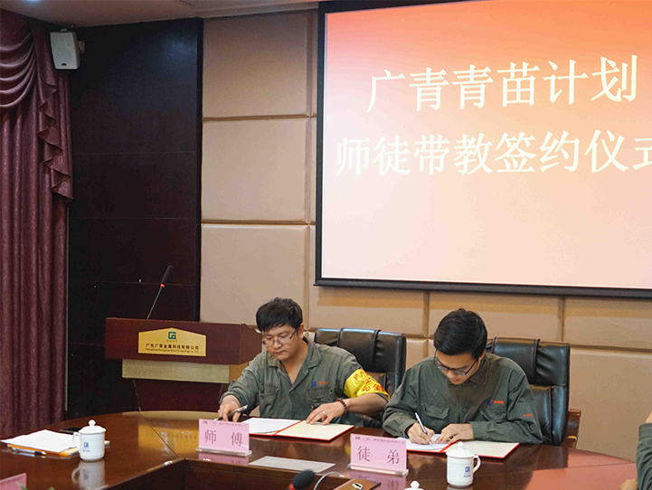 9月3日,廣東廣青金屬科技有限公司“青苗計劃”啟動儀式暨師徒帶教簽約儀式在公司辦公樓一樓會議室舉行。公司黨委副書記江華革,副總經(jīng)理劉光勇,各廠廠長以及項目有關(guān)負(fù)責(zé)人出席了活動。