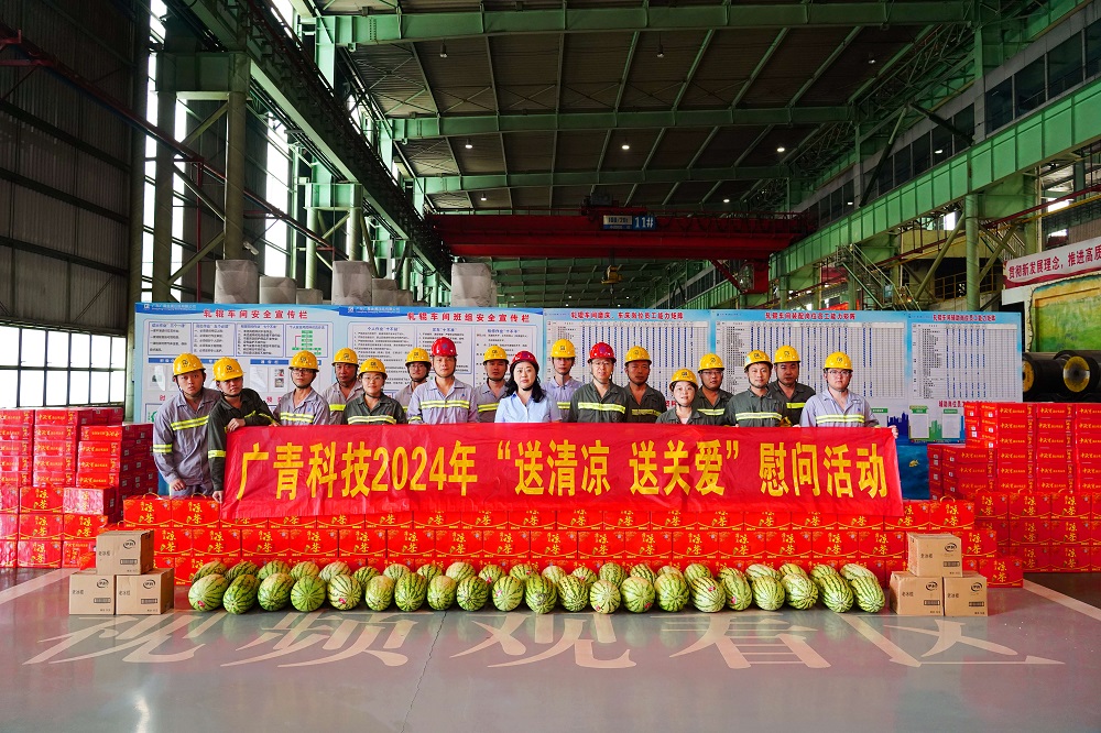 盛夏時節(jié),烈日炎炎。連日來,持續(xù)高溫“烤”驗著奮斗在一線的職工們,為切實維護廣大職工的健康和安全權益,近日,廣東廣青金屬科技有限公司開展了“夏日送清涼”慰問活動,為高溫酷暑仍堅守在生產一線的廣大職工送去“夏日清涼”,把公司的關愛送到廣大職工的心坎上。