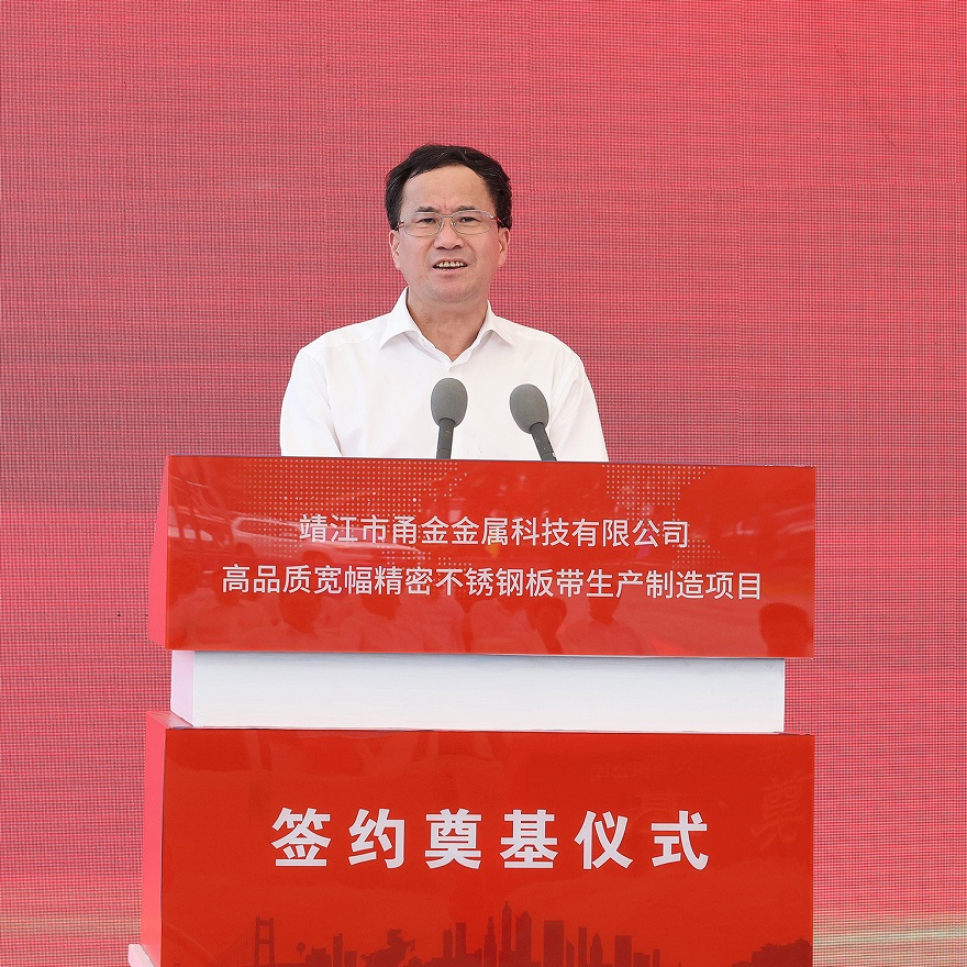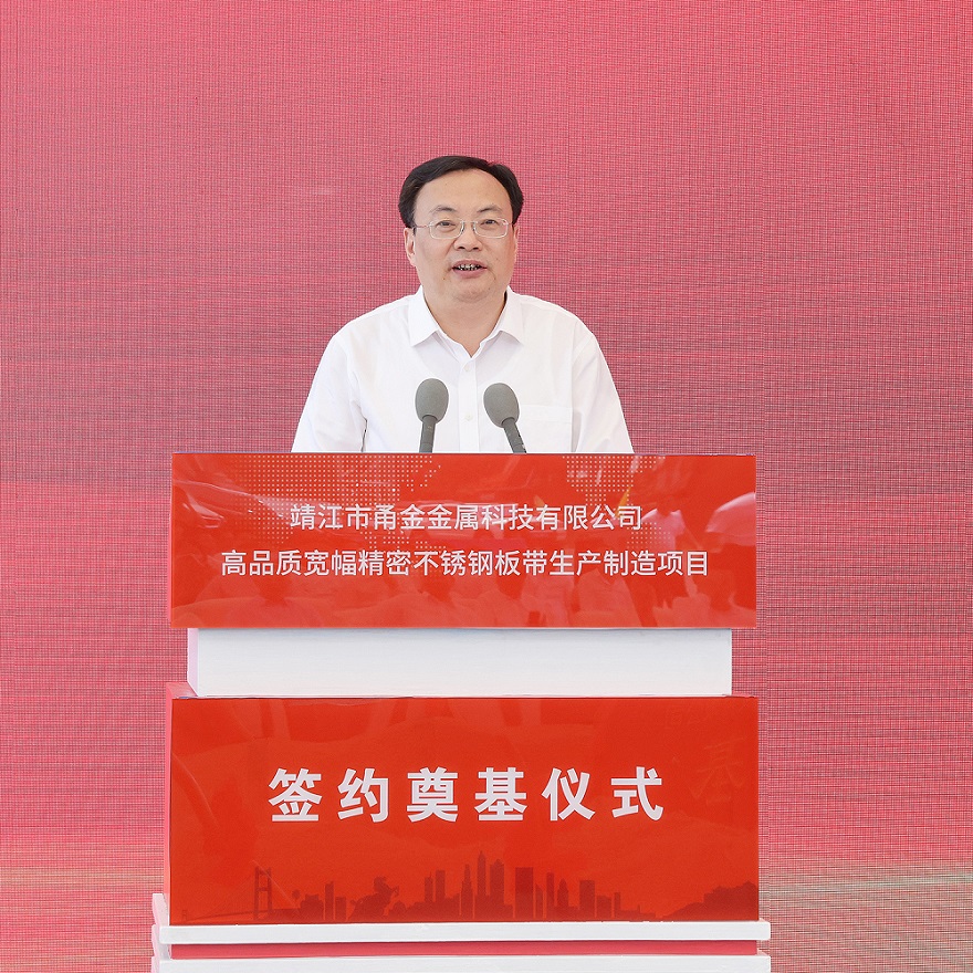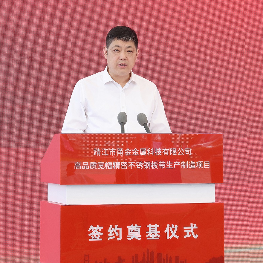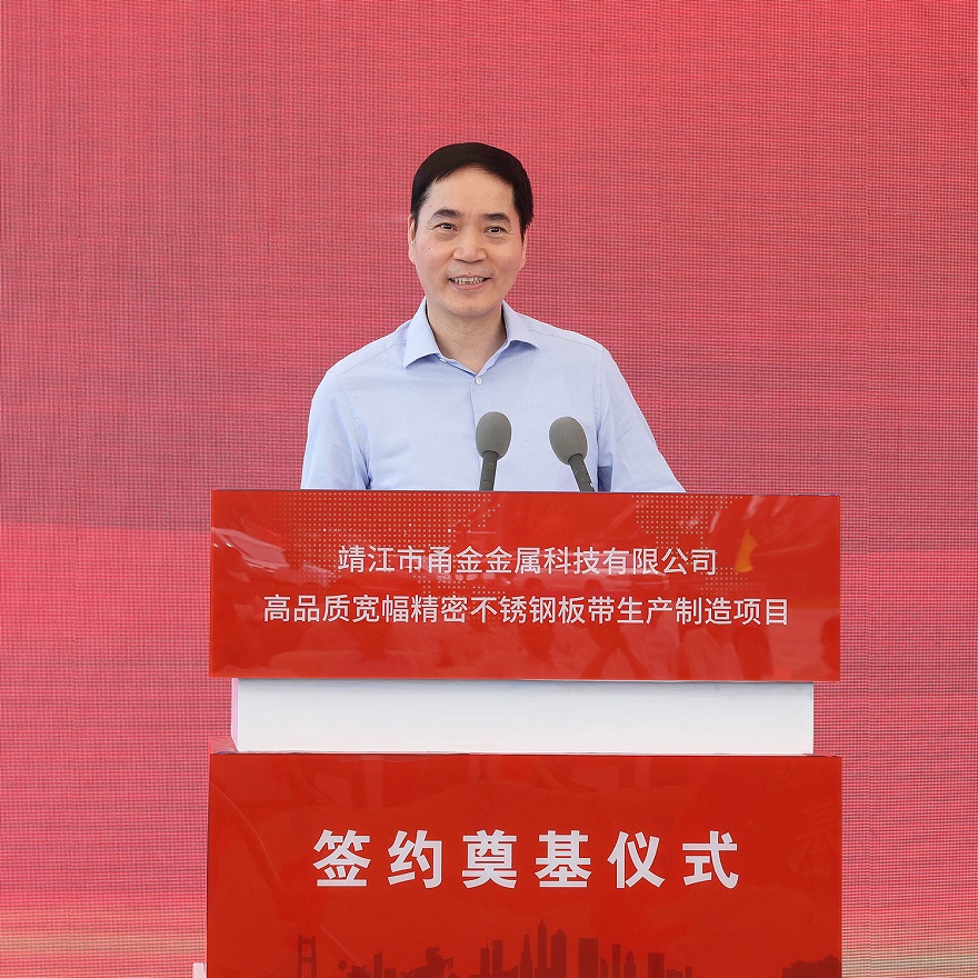 靖江市委常委、經(jīng)濟(jì)技術(shù)開(kāi)發(fā)區(qū)黨工委副書(shū)記張勁松介紹了項(xiàng)目情況,他指出:靖江甬金項(xiàng)目總投資20億元,用地271畝,計(jì)劃建設(shè)年加工120萬(wàn)噸高品質(zhì)寬幅不銹鋼冷軋鋼帶生產(chǎn)基地;靖江開(kāi)發(fā)區(qū)將以最大的誠(chéng)意盡最大的努力,以最優(yōu)質(zhì)的服務(wù)、最優(yōu)秀的政策、最優(yōu)良的環(huán)境助力項(xiàng)目高效的推進(jìn)、高標(biāo)準(zhǔn)建設(shè),真正讓企業(yè)投資放心、創(chuàng)業(yè)舒心、發(fā)展安心。