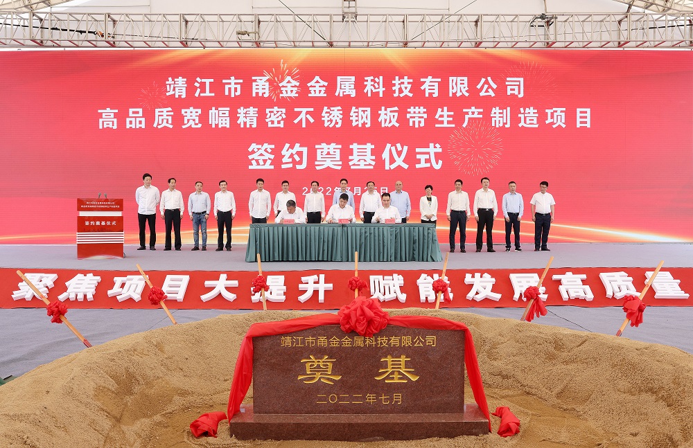 董趙勇董事長(zhǎng)表示:甬金金屬科技高品質(zhì)寬幅精密不銹鋼板帶生產(chǎn)制造項(xiàng)目位于青山(靖江)不銹鋼深加工產(chǎn)業(yè)園,項(xiàng)目所需原料全部由青拓集團(tuán)福建基地供給,依托甬金股份的品牌優(yōu)勢(shì)、科技優(yōu)勢(shì)和豐富的不銹鋼寬幅板帶生產(chǎn)技術(shù)經(jīng)驗(yàn),保障項(xiàng)目順利投產(chǎn)并快速創(chuàng)造經(jīng)濟(jì)效益;將發(fā)揚(yáng)“團(tuán)結(jié)、高效、務(wù)實(shí)、發(fā)展”的精神,以只爭(zhēng)朝夕的工作作風(fēng),確保一期項(xiàng)目于2023年第三季度順利投產(chǎn)。