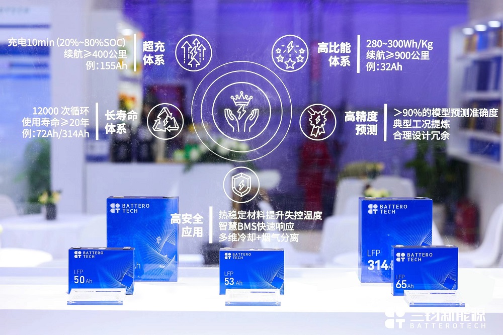 展會(huì)現(xiàn)場(chǎng),蘭鈞新能源展臺(tái)前來(lái)參觀的交流者絡(luò)繹不絕,升級(jí)版的新一代314Ah電芯同樣備受矚目。