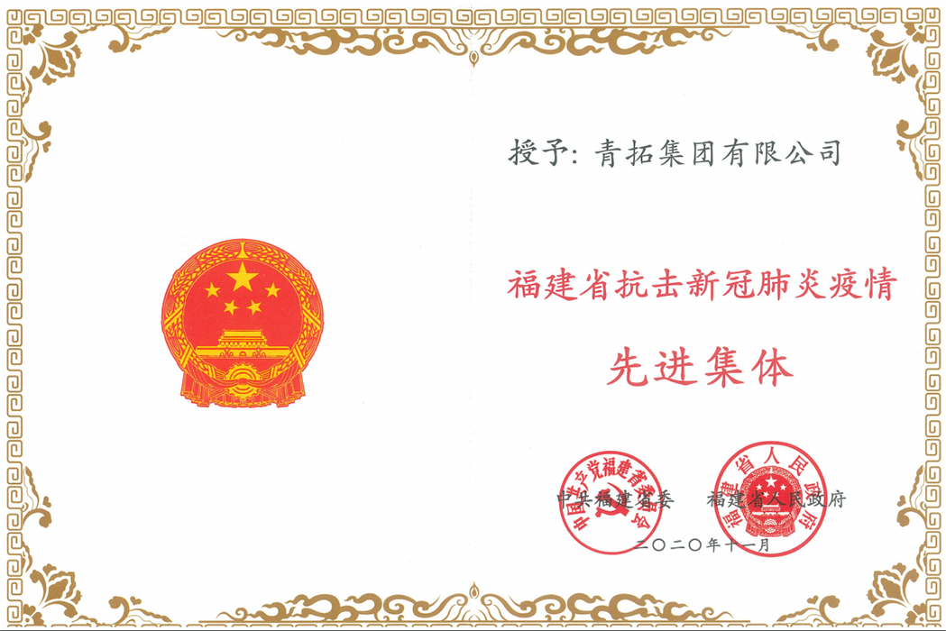 11月25 日,福建省抗擊新冠肺炎疫情表彰大會在福建會堂隆重舉行,青拓集團(tuán)有限公司憑借今年在疫情防控和復(fù)工復(fù)產(chǎn)中的突出表現(xiàn),獲評福建省抗擊新冠肺炎疫情先進(jìn)集體,集團(tuán)黨委書記、行政總經(jīng)理鐘盛江代表青拓集團(tuán)參會并接受表彰。