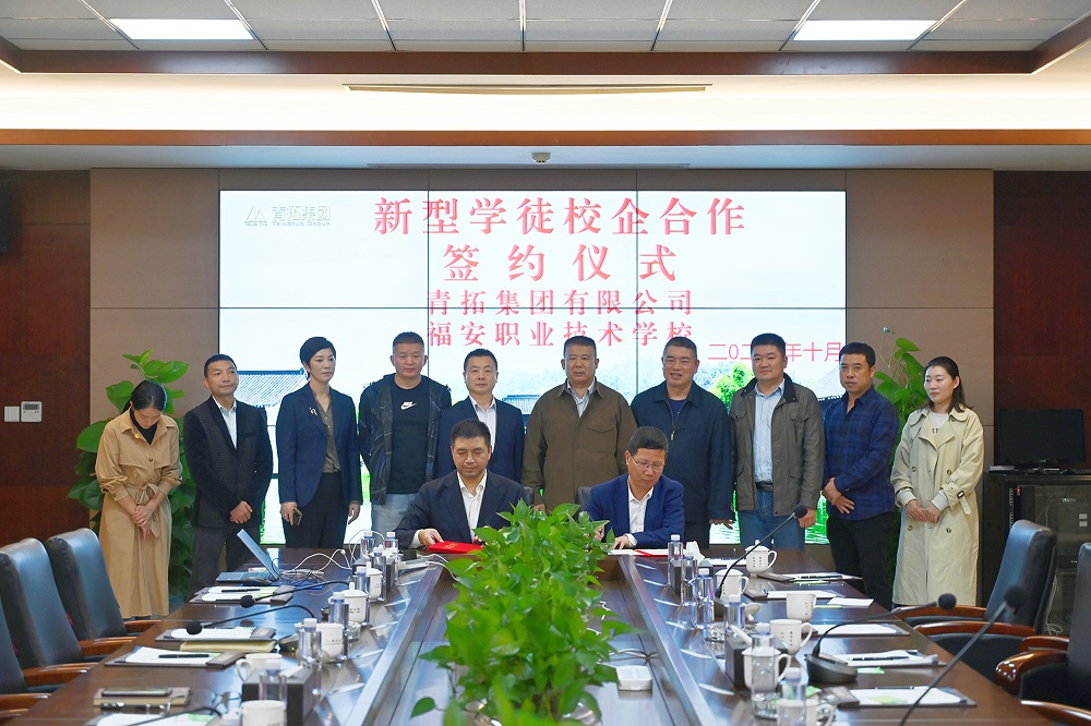 簽約儀式上,青拓集團和福安職業(yè)技術(shù)學院建立了新型學徒校企合作關(guān)系,劉永清詳細介紹了企業(yè)目前學徒培訓現(xiàn)狀,雙方就新型學徒重點專項課題進行了深入探討。