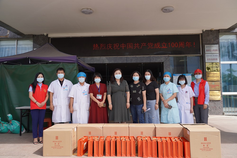 在陽(yáng)江高新區(qū)人民醫(yī)院,慰問(wèn)組與醫(yī)護(hù)人員進(jìn)行了親切交流,并代表公司向堅(jiān)守防疫一線的廣大醫(yī)護(hù)人員表達(dá)敬意,感謝他們一直以來(lái)對(duì)公司的支持和幫助。