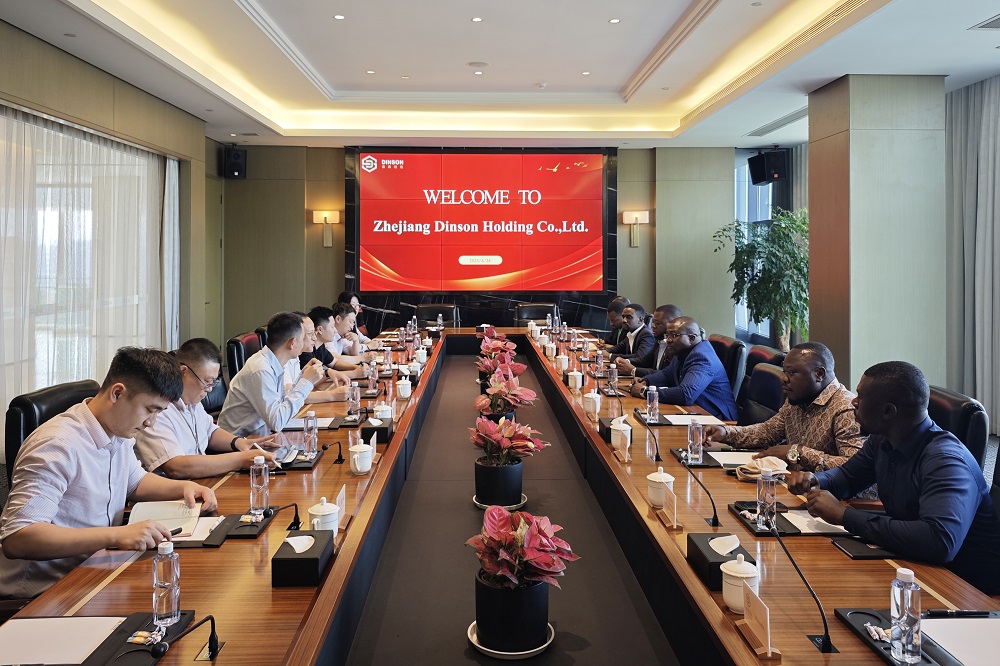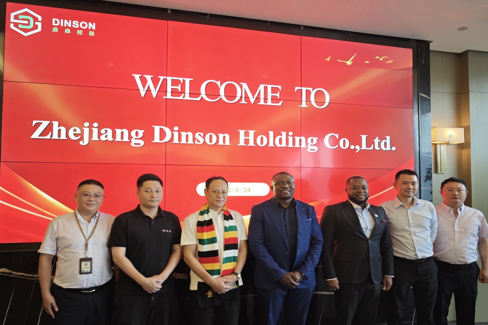 6月24日,津巴布韋工商部部長Hon. Mangaliso Ndlovu(曼加利索·恩德洛武)與財(cái)政及經(jīng)濟(jì)發(fā)展部副部長Hon. David Kudakwashe Mnangagwa(大衛(wèi)·庫達(dá)克瓦什·姆南加古瓦)率團(tuán)蒞臨浙江鼎森控股有限公司考察指導(dǎo)。鼎森控股董事長陳上松、總經(jīng)理陳浙,鼎森實(shí)業(yè)(私人)有限公司總裁許克敏等高層熱情接待。