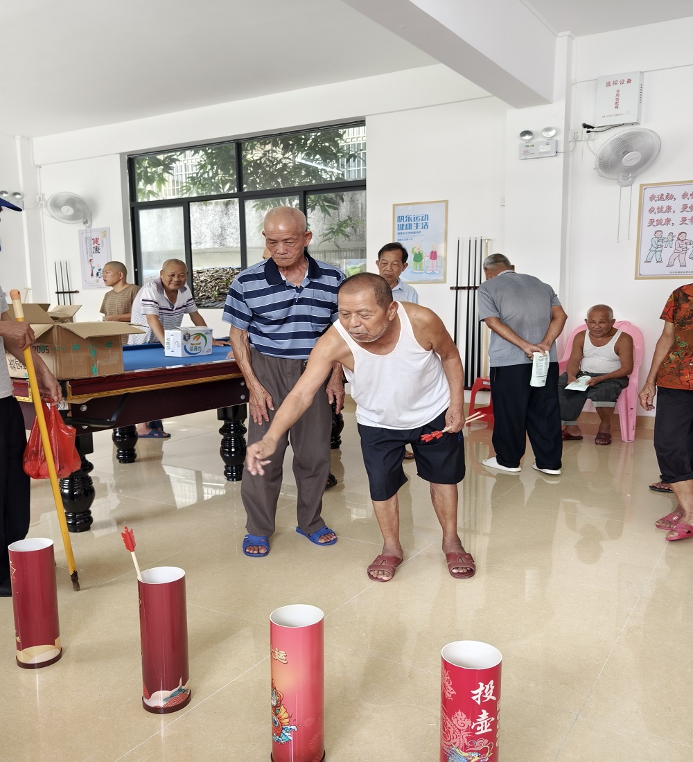 為了讓這個(gè)端午節(jié)更加難忘,志愿者服務(wù)隊(duì)還精心策劃了一系列趣味盎然的互動(dòng)游戲。在“套圈圈”游戲中,老人們手握彩色圈圈,瞄準(zhǔn)擺放著小禮品的立柱,每套中一次便引來一陣歡笑和掌聲;“投壺”環(huán)節(jié),老少同樂,展現(xiàn)了傳統(tǒng)游戲的魅力,參與者們屏息凝神,每一次精準(zhǔn)的投擲都讓現(xiàn)場(chǎng)氣氛高漲;而“夾珠子”比賽,則考驗(yàn)著大家的手眼協(xié)調(diào)能力,在輕松愉快的氛圍中,老人們展現(xiàn)出了不凡的技巧,贏得了陣陣喝彩;“抽獎(jiǎng)滾滾樂”游戲最受老人們的歡迎,每一次的參與都有不一樣的驚喜。