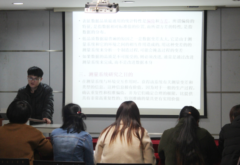 本次培訓(xùn)重點(diǎn)講解了測量數(shù)據(jù)品質(zhì)、測量術(shù)語、測量系統(tǒng)的統(tǒng)計(jì)特性、評(píng)價(jià)測量系統(tǒng)時(shí)需確定的基本問題、測量系統(tǒng)的分辨率、測量系統(tǒng)變差的類型、測量系統(tǒng)研究的準(zhǔn)備工作、測量系統(tǒng)分析實(shí)施流程及測量系統(tǒng)研究的注意事項(xiàng)等方面的內(nèi)容。培訓(xùn)過程中大家對(duì)日常工作中遇到的測量數(shù)據(jù)偏差較大的案例進(jìn)行探討,分析造成測量誤差的原因并尋求降低誤差的方法。