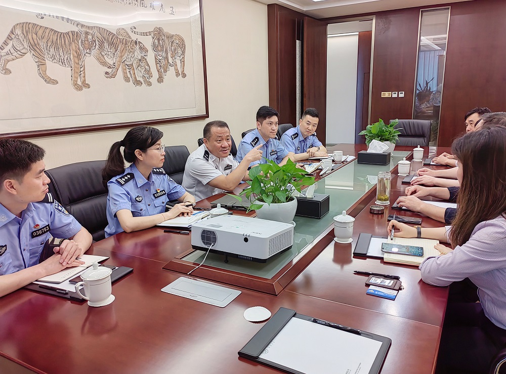 5月31日上午,溫州市公安局副局長徐志宏、公安局出入境管理局局長盧昊列一行實(shí)地走訪浙江鼎森控股有限公司,鼎森控股董事長陳上松、永青集團(tuán)副總裁孫元磷等進(jìn)行熱情接待。