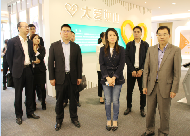 座談會(huì)前,孫建芬?guī)ьI(lǐng)陳志法一行參觀了青山總部大樓、黨群活動(dòng)室和青山慈善展廳。