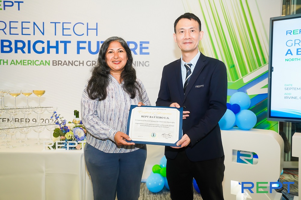 爾灣市長(zhǎng)Farrah N. Khan致辭并為瑞浦蘭鈞美國(guó)子公司頒發(fā)開(kāi)業(yè)證書(shū),她表示:“可持續(xù)發(fā)展是我們一直以來(lái)關(guān)注的問(wèn)題,瑞浦蘭鈞憑借著在電池領(lǐng)域的技術(shù)實(shí)力推動(dòng)了新能源行業(yè)的發(fā)展,我們非常期待瑞浦蘭鈞美國(guó)子公司的發(fā)展,以創(chuàng)新科技助力環(huán)保可持續(xù)發(fā)展和綠色能源發(fā)展?!?/p>