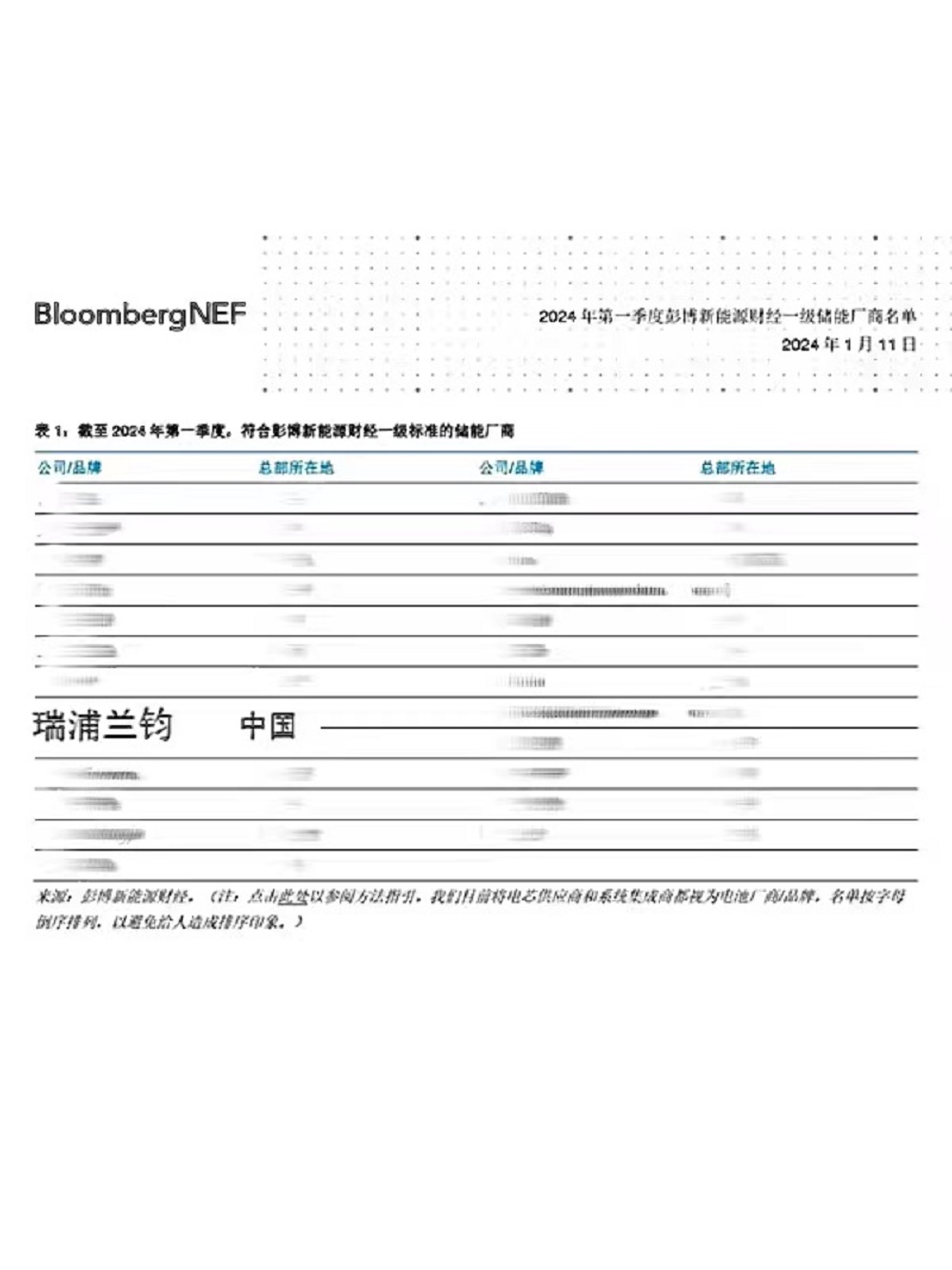 彭博新能源財(cái)經(jīng)以項(xiàng)目規(guī)格、數(shù)量、質(zhì)量等為標(biāo)準(zhǔn)為電池廠商和系統(tǒng)集成商建立了透明的差異化分級(jí)系統(tǒng)。日前首發(fā)了包括截至2024年第一季度符合標(biāo)準(zhǔn)的廠商,瑞浦蘭鈞能源股份有限公司榮登彭博新能源財(cái)經(jīng)Tier1一級(jí)儲(chǔ)能廠商名單。