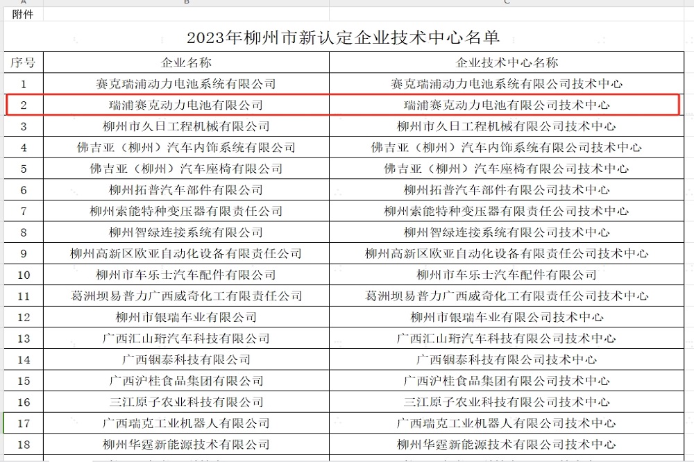 近期,柳州市工業(yè)和信息化局公布一批2023年新認(rèn)定企業(yè)技術(shù)中心名單,瑞浦賽克動(dòng)力電池有限公司獲評(píng)2023年“柳州市企業(yè)技術(shù)中心”。