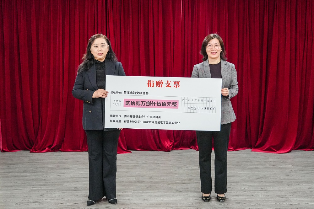 陽(yáng)江“百人助學(xué)”計(jì)劃是青慈會(huì)聯(lián)合廣青科技以及陽(yáng)江市婦聯(lián)等有關(guān)部門在當(dāng)?shù)亻_(kāi)展的幫助家庭困難學(xué)生完成學(xué)業(yè)的慈善項(xiàng)目,2023年已在陽(yáng)江濱海新區(qū)(陽(yáng)江高新區(qū))首次組織開(kāi)展,為當(dāng)?shù)匕倜麑W(xué)生提供了21.55萬(wàn)元的資助,這次再度捐資22.85萬(wàn)元幫助陽(yáng)江100名學(xué)子完成學(xué)業(yè),進(jìn)一步傳遞企業(yè)的責(zé)任擔(dān)當(dāng)和對(duì)困難學(xué)子的關(guān)心關(guān)愛(ài),為“百千萬(wàn)工程”添磚加瓦。