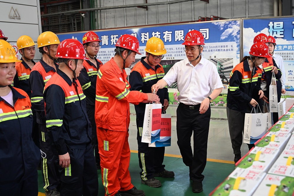 一行人員深入青拓冷軋科技,為堅守在一線的工作者們送上一份清涼。周聯(lián)清囑咐大家:在高溫工作期間要注意勞逸結(jié)合,增強在高溫天氣下工作的自我防護(hù)意識,合理安排工作時間,注意休息,既要做好本職工作,又要注意身體健康。同時,他督促各部門將職工人身安全放在首位,落實好各項防暑降溫和勞動保護(hù)措施,確保職工人身安全和生產(chǎn)作業(yè)安全。