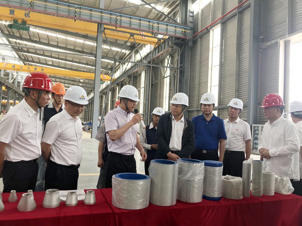 李仰哲一行驅(qū)車(chē)前往園區(qū)觀景臺(tái)。觀景臺(tái)上視野開(kāi)闊,袁華軍、韋芝富、張積敏對(duì)園區(qū)整體建設(shè)做了介紹。親眼目睹林立在群山中的現(xiàn)代化標(biāo)準(zhǔn)廠房,聽(tīng)取韋芝富對(duì)于園區(qū)“零排放”環(huán)保模式的匯報(bào)后,李仰哲表示贊許。隨后,一行人員實(shí)地考察了浙江青山鋼管有限公司焊管車(chē)間。樣品臺(tái)前,在詳細(xì)詢(xún)問(wèn)了產(chǎn)品的工藝流程、使用范圍以及與國(guó)外頂尖企業(yè)的差別后,李仰哲指出:青山鋼管不銹鋼產(chǎn)品要持續(xù)加大技術(shù)投入,著眼于工藝提升,以高品質(zhì)、好口碑、高性?xún)r(jià)比及品牌效應(yīng)占領(lǐng)市場(chǎng)。