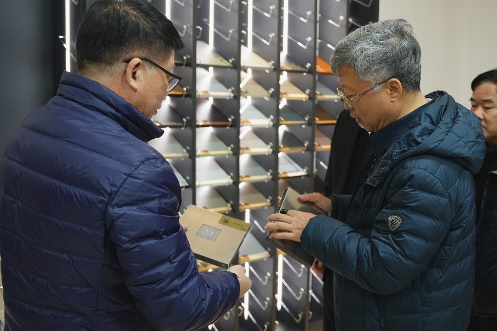 參觀過程中,姜海洪、江來珠分別圍繞企業(yè)發(fā)展情況、市場(chǎng)定位、未來規(guī)劃、研發(fā)團(tuán)隊(duì)、科技創(chuàng)新等方面的內(nèi)容進(jìn)行了介紹。在家具展廳,滕佳材對(duì)彩色不銹鋼裝飾板產(chǎn)生濃厚興趣,陳慶科介紹了產(chǎn)品應(yīng)用領(lǐng)域。