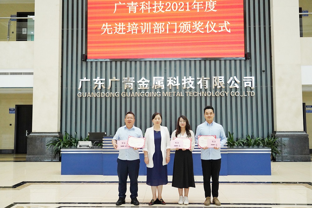 近日,廣東廣青金屬科技有限公司舉辦了2021年度先進培訓部門頒獎儀式,對獲評“2021年度先進培訓部門”的技術(shù)質(zhì)量部、煉鋼廠、綜合部等3個部門(廠)予以表彰,對27名學習積極分子予以獎勵。