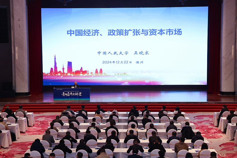12月22日上午,第四期青山名師大講堂在青山學(xué)苑舉行。本次大講堂特邀著名金融學(xué)家、中國(guó)人民大學(xué)原副校長(zhǎng)、一級(jí)教授、中國(guó)人民大學(xué)國(guó)家金融研究院院長(zhǎng)、中國(guó)資本市場(chǎng)研究院院長(zhǎng)吳曉求教授作了以“中國(guó)經(jīng)濟(jì)、政策擴(kuò)張與資本市場(chǎng)”為主題的專題報(bào)告。青山實(shí)業(yè)董事局主席項(xiàng)光達(dá)、有關(guān)政府領(lǐng)導(dǎo)、青山實(shí)業(yè)下屬企業(yè)代表、溫州新生代企業(yè)家代表和社會(huì)各界人士近300人出席了本次大講堂。大講堂由青山國(guó)際商學(xué)院(籌)常務(wù)副院長(zhǎng)葉建亮教授主持。