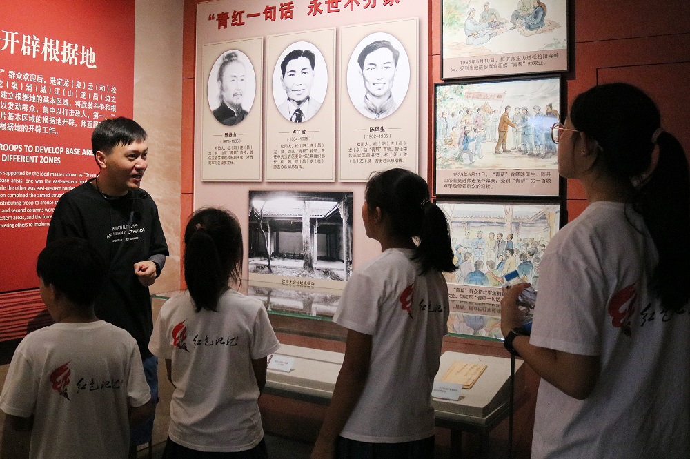 孩子們在莊嚴(yán)肅穆的浙西南革命根據(jù)地紀(jì)念館(舊址)中,聆聽烽火歲月的故事,觸摸歷史溫度,革命先輩的英勇無畏化作顆顆紅星,點亮了心中的愛國火種。