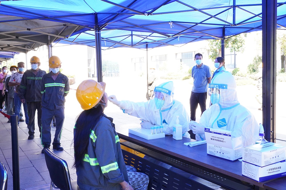 7月9日,陽(yáng)江發(fā)現(xiàn)1例本土病例,為全力排查風(fēng)險(xiǎn)隱患,守護(hù)員工的生命健康安全,確保公司生產(chǎn)經(jīng)營(yíng)安全平穩(wěn)運(yùn)行,公司結(jié)合疫情防控形勢(shì)新變化,分別于7月11日和7月13日兩次組織全體在崗人員、員工家屬及外協(xié)單位人員開展核酸篩查。