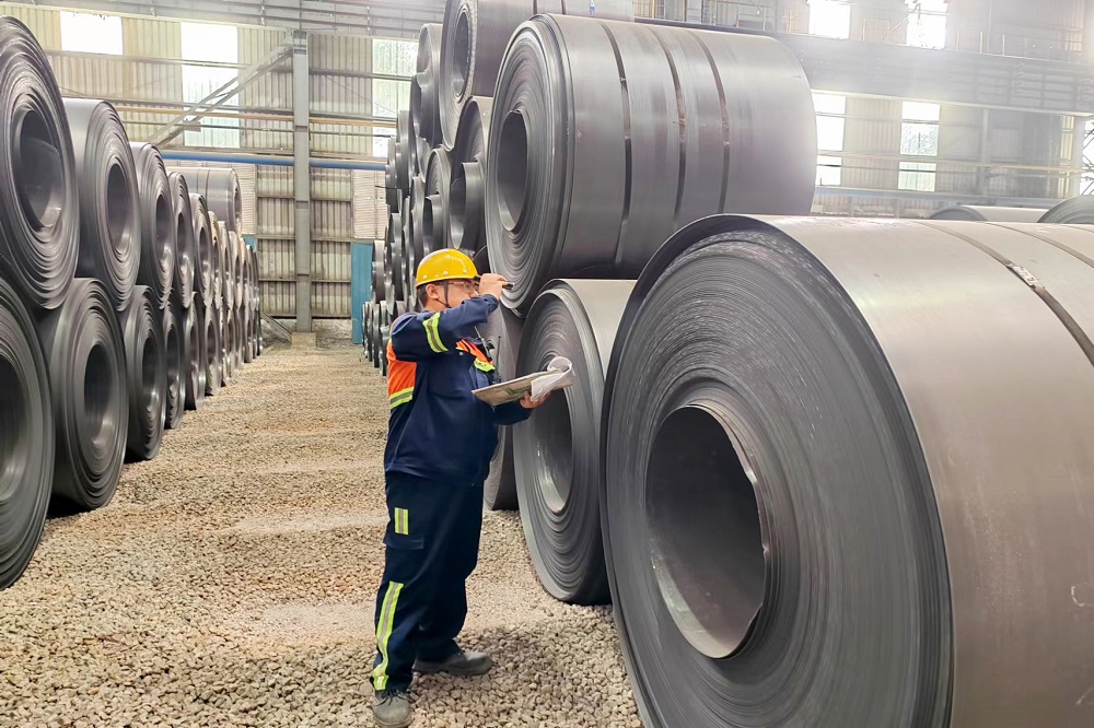庫房區(qū)內(nèi)堆放著一排排剛出爐的鋼卷,持續(xù)炙烤下,存放鋼卷區(qū)的溫度高達(dá)四五十度。他們穿梭在熱浪夾縫中,入庫、找卷、登記、調(diào)撥、安排發(fā)貨,身體感覺承受不住的時候才會跑到休息室內(nèi)歇息一會。他們開玩笑說:從庫區(qū)到休息室短短一分鐘的路程,可以讓你享受到冰火兩重天的感覺。說這句話的時候,他們臉頰上的汗滴落到地板上碎成幾瓣,苦中作樂,沒有半點怨言,笑容一直洋溢在他們的臉上。