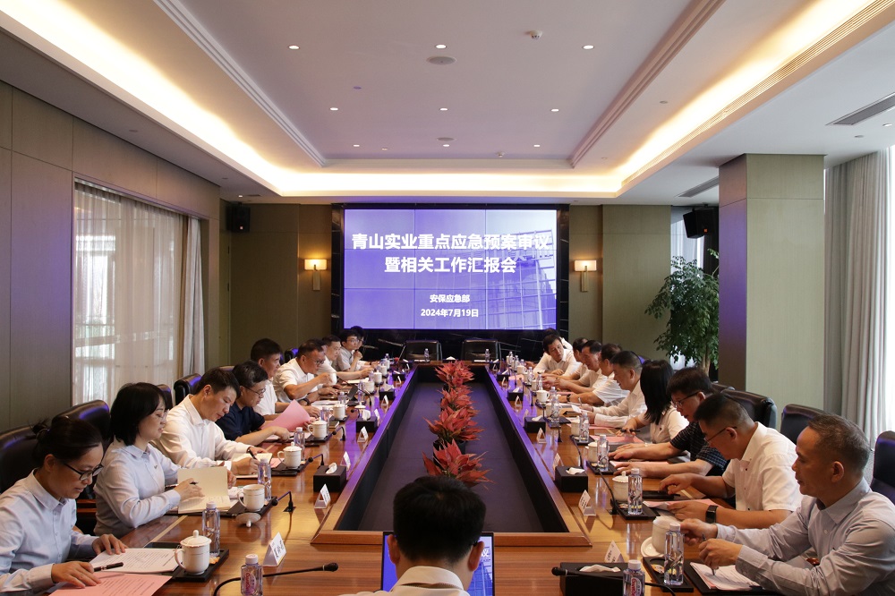 為推進青山應急預案編制修訂工作,7月19日上午,青山實業(yè)董事局監(jiān)察安全委員會安保應急部組織召開了《青山實業(yè)突發(fā)公共事件總體應急預案》審議會。董事局黃德余、孫建芬、張憲明等領(lǐng)導,青拓集團、瑞浦蘭鈞、吉瑞公司以及信拓公司、鼎森控股等企業(yè)相關(guān)領(lǐng)導出席會議。