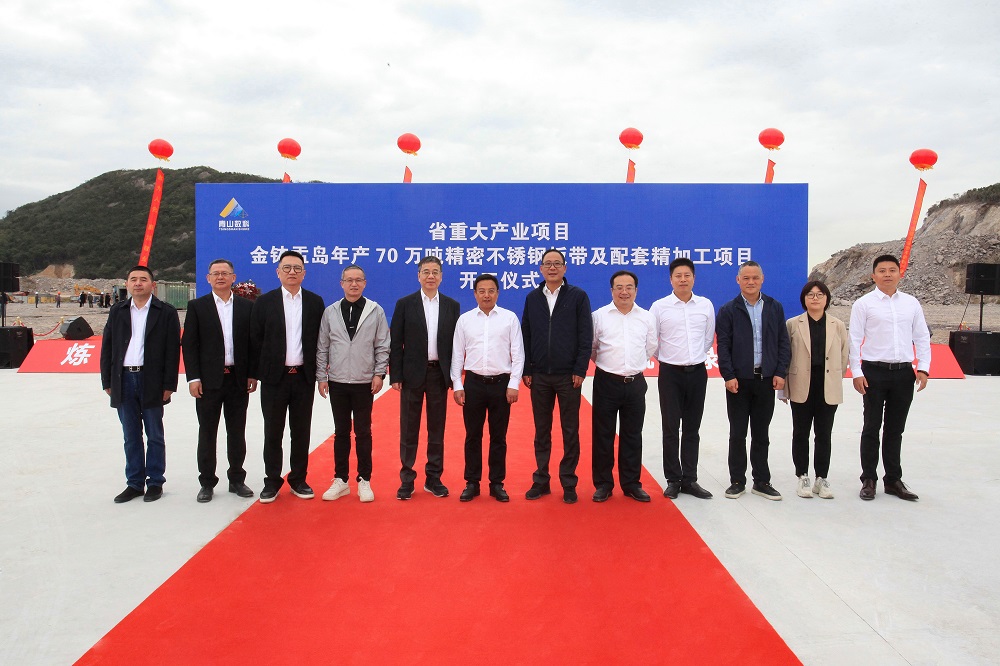 10月26日上午,浙江省重大產(chǎn)業(yè)項目——金缽盂島年產(chǎn)70萬噸精密不銹鋼板帶及配套精加工項目開工儀式順利舉行。舟山市普陀區(qū)委副書記、區(qū)長徐煒波,副區(qū)長樂舟龍、周吉敏,蝦峙鎮(zhèn)黨委書記賀恩盛及區(qū)屬各部門相關(guān)領(lǐng)導(dǎo),浙江青山數(shù)科科技有限公司董事長黃順成、總經(jīng)理張珈瑋出席開工儀式。