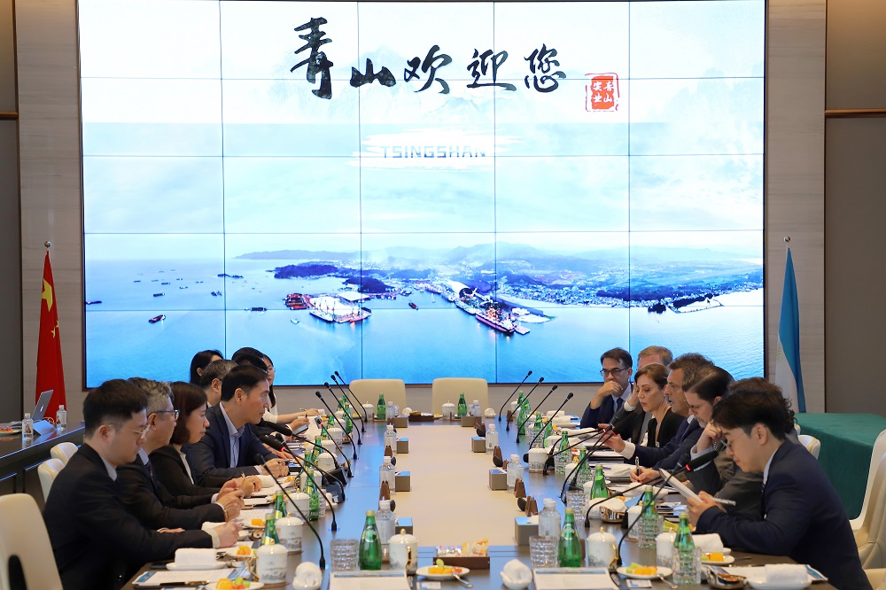 座談會(huì)上,項(xiàng)光達(dá)主席對一行客人的到來表示熱烈歡迎,他簡要介紹了青山實(shí)業(yè)的發(fā)展歷程和全球化布局。他指出:青山實(shí)業(yè)積極響應(yīng)國家“一帶一路”倡議,持續(xù)踐行“走出去”戰(zhàn)略,帶動(dòng)促進(jìn)當(dāng)?shù)厣鐣?huì)的經(jīng)濟(jì)發(fā)展;青山實(shí)業(yè)一直以多快好省推動(dòng)項(xiàng)目建設(shè);青山實(shí)業(yè)非常重視產(chǎn)業(yè)鏈建設(shè),在印尼已建成具備完整鎳資源加工利用的綜合工業(yè)園區(qū),吸引眾多優(yōu)秀企業(yè)入駐。