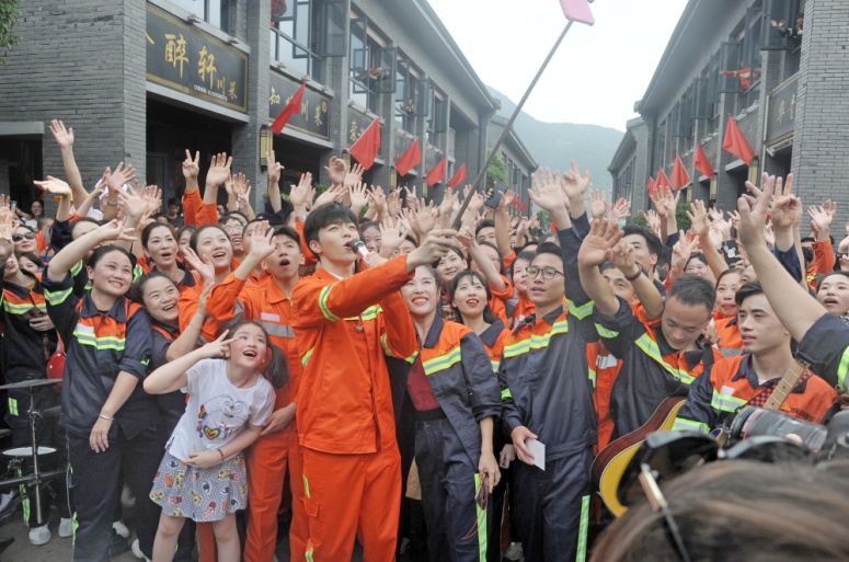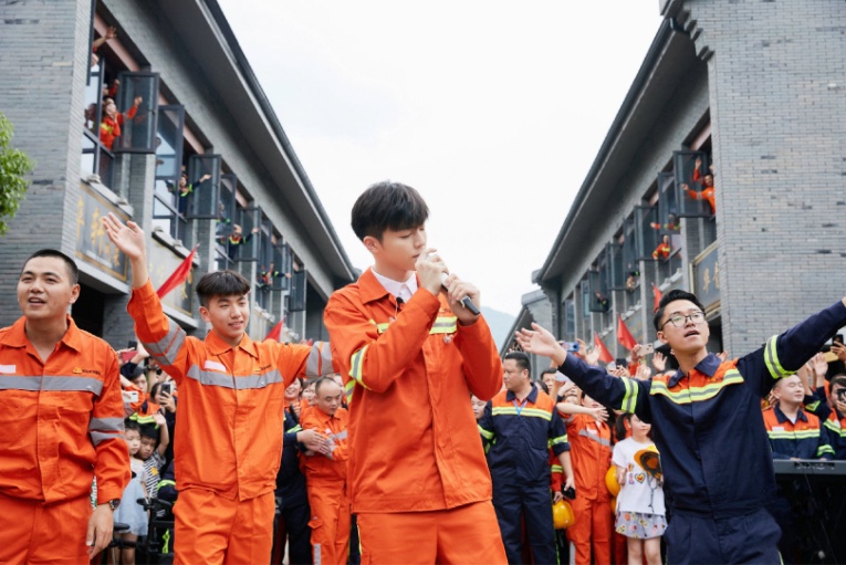 9時(shí),嘉賓陳立農(nóng)和青拓樂隊(duì)成員在青山街表演,以快閃的形式演唱了歌曲《少年》。歡快躍動(dòng)的旋律響起,大家循著歌聲紛紛加入合唱,并與陳立農(nóng)熱情互動(dòng)。紅旗隨風(fēng)飄揚(yáng),員工們歡呼雀躍,大聲放歌,一如從前那個(gè)少年,整個(gè)青山街徜徉在《少年》的輕快歌聲中。